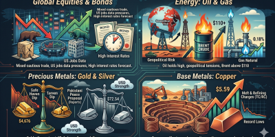 انخفاض في أسواق الأسهم والمعادن الثمينة وارتفاع في الطاقة وعوائد السندات Stock and precious metals markets declined, while energy and bond yields rose.
