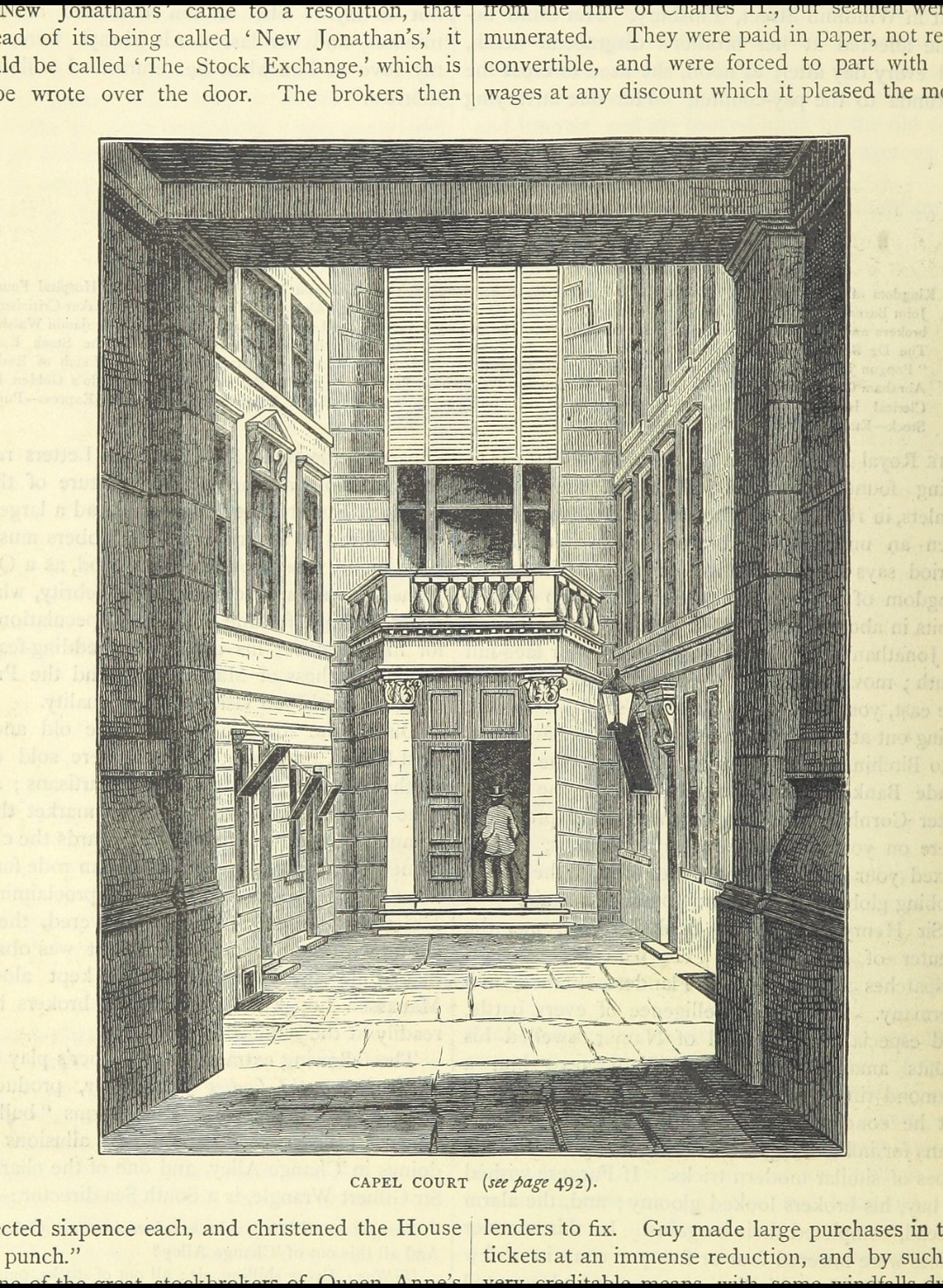 تأسست بورصة لندن في Sweeting’s Alley في لندن عام 1801. وانتقلت إلى Capel Court في العام التالي.