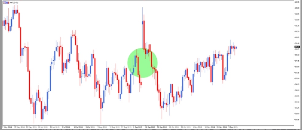 عندما افتتح السوق في 16 سبتمبر، ارتفع خام برنت من 60.42 مساء يوم 13 سبتمبر إلى 72.19 في السوق المفتوح في 16 سبتمبر – قفزة قدرها 19.4٪. خلال نفس الفترة، قفز خام غرب تكساس الوسيط بنسبة 15.5٪ – من 54.79 إلى 63.28.