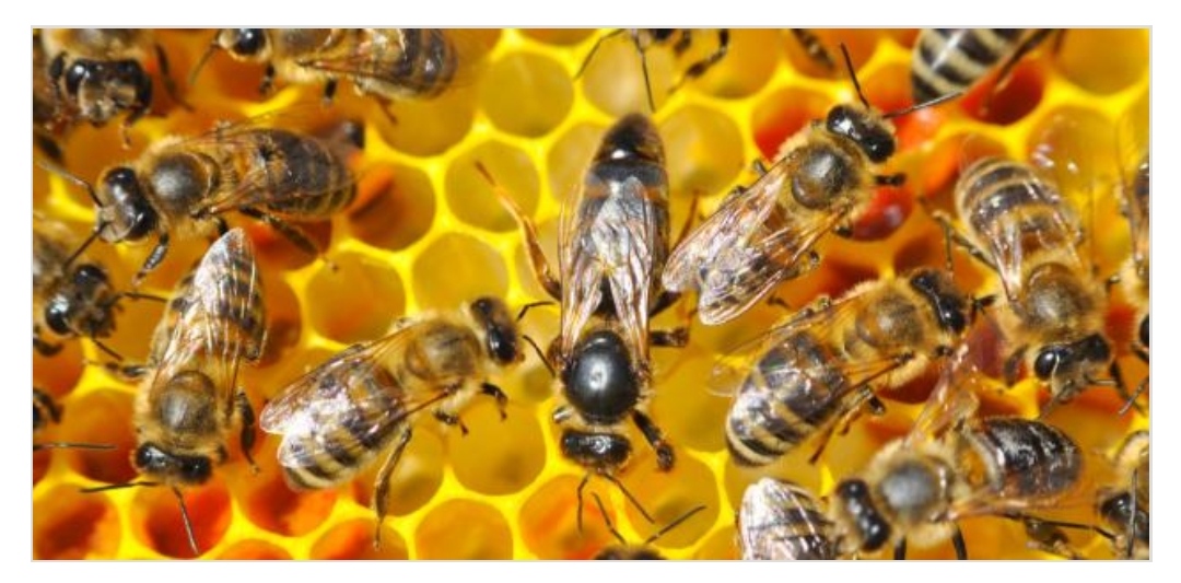 مستعمرة النحل يعمل جميع أفراد مستعمرة النحل الواحدة بروح الفريق معاً على الرغم من تنوع المهام والمسميات فيها، حيث توجد فيها ملكات النحل، والعاملات، والذكور، التي تختلف في تركيبها ومهامها، لكن تبدأ جميعها كبيضة واحدة طولية الشكل توضع داخل أحد ثقوب المستعمرة لثلاثة أيام، ثم تفقس وتدخل طور اليرقة طالبةً العناية الحثيثة ليلاً ونهاراً، وتُغذّى بغذاء ملكات النحل الذي تصنعه العاملات في المستعمرة لعدة أيام، ثم تُغذى بما يسمى خبز النحل، وهو مزيج من العسل وغبار الطلع، وبعد ذلك تغلق أبواب الثقوب على اليرقة لمدة تمتد من أسبوع إلى أسبوعين ليتسنى لها التحول إلى شرنقة، ثم تدخل بعدها طور الحشرة الكاملة التي لها جسم كامل، ورأس، وأجنحة