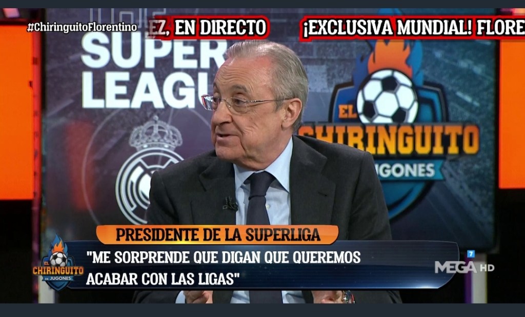 حل رئيس ريال مدريد، فلورنتينو بيريز، والذي سيكون “الرئيس الأول” لـ”دوري السوبر الأوروبي”، ضيفا على برنامج “إل تشيرينغيتو” مساء أمس الأحد، حيث تحدث عن إنشاء هذه “البطولة الجديدة”، كما تطرق لمواضيع أخرى تهم فريقه.