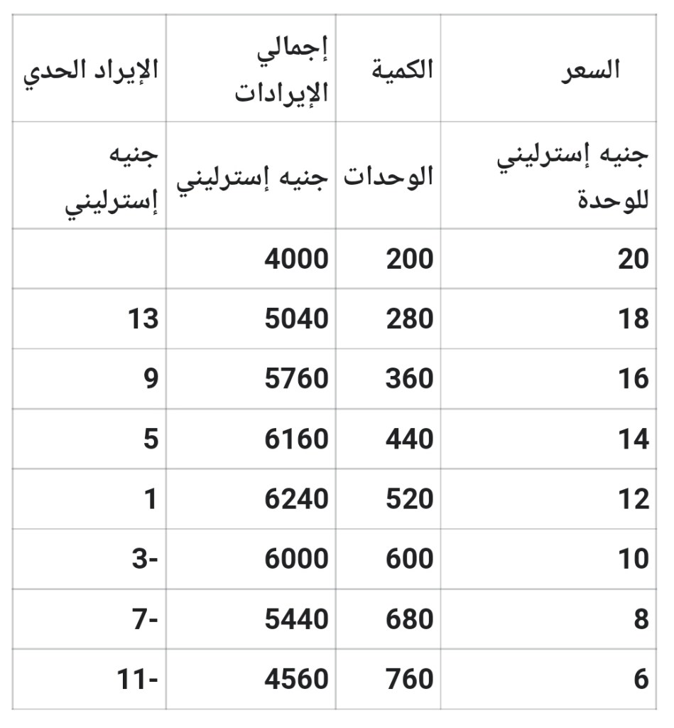 انخفاض إجمالي الإيرادات بانخفاض السعر.