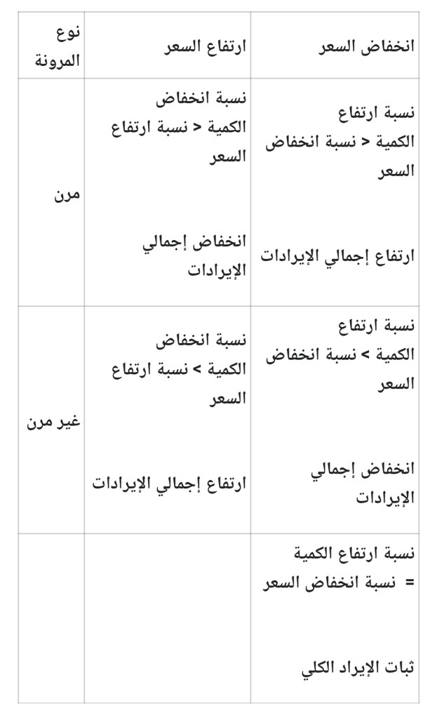 ومن ثم، فإن الأثر الصافي على إجمالي الإيرادات سوف يعتمد على التغير النسبي في كل من الكمية والسعر، حيث درجة المُرونة. ويُمكن تلخيص العلاقة بين المُرونة وإجمالي الإيرادات كالاتي: 1- إذا كان الطلب مرناً حيث يُعد التغير النسبي في الكمية أكبر من التغير النسبي في السعر.