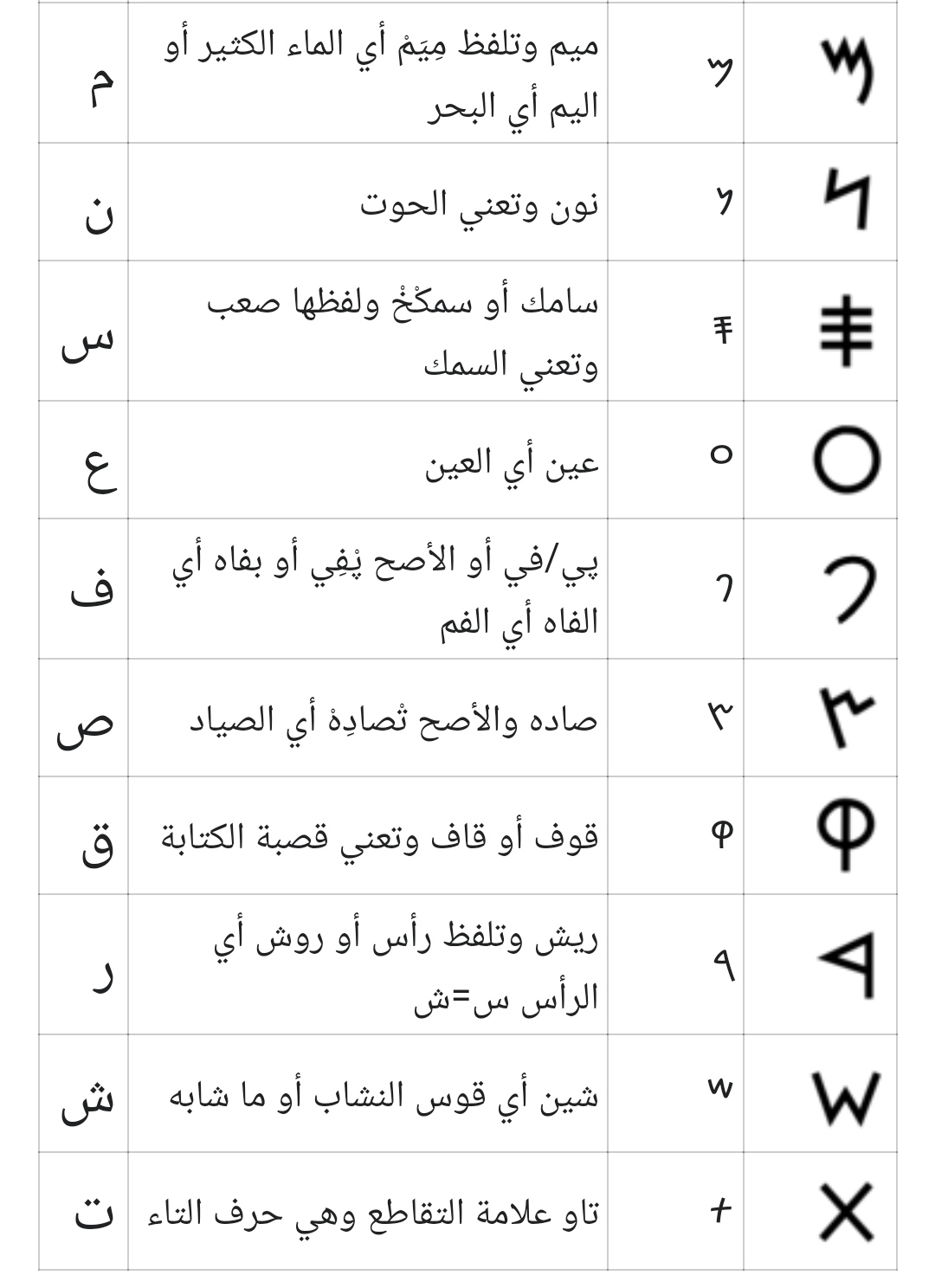 السطر الثاني الفينيقي ا ش م ن ع ز ر ك هـ ن ع ش ت ر ت م ل ك ص د ن م ش ك ب ب أ ر ن