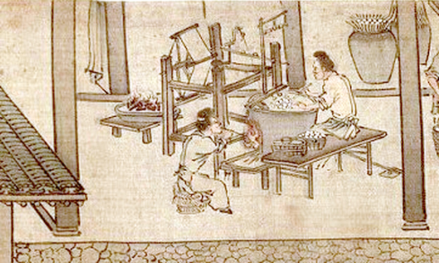 تشير كتابات كونفوشيوس والتقاليد الصينية إلى أنه في حوالي عام 3000 قبل الميلاد، سقطت شرنقة دودة الحرير في فنجان شاي الإمبراطورة ليزو . و رغبة في استخراجها من شرابها، بدأت الفتاة البالغة من العمر 14 عامًا في نزع فتيل شرنقة الشرنقة.