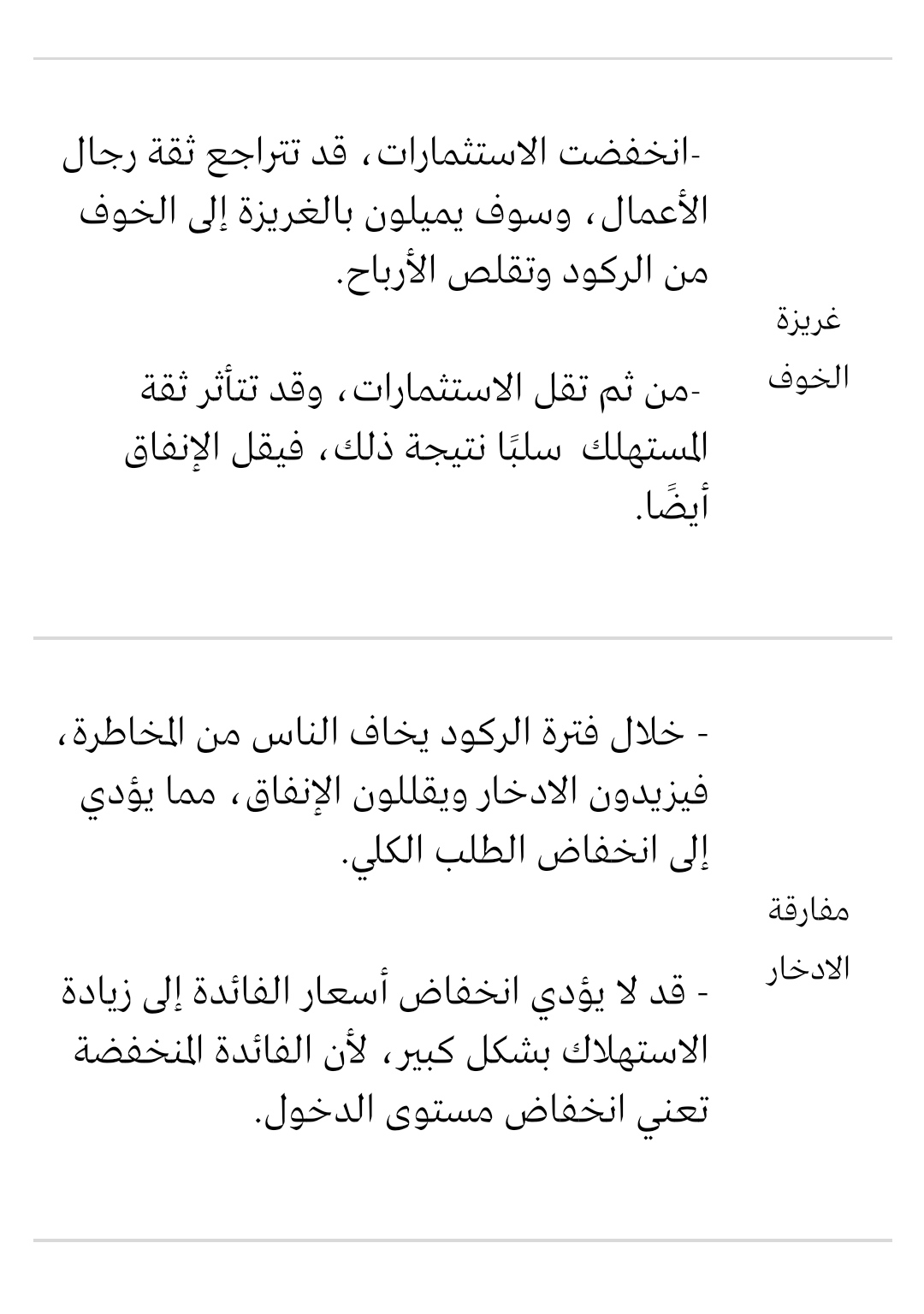– يحدث الركود إذا ما تجاوز الادخار الاستثمار.
