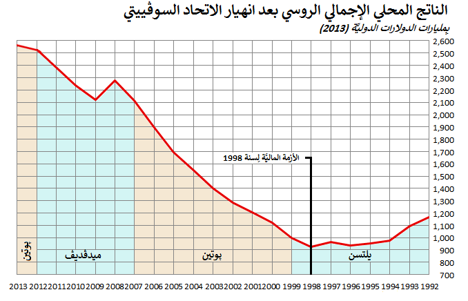 انتخب بوريس يلتسن رئيس جمهورية روسيا في حزيران 1991 في أول انتخابات رئاسية مباشرة في التاريخ الروسي. عندما انهار الاتحاد السوفيتي في أواخر عام 1991 كان هناك اعتراف بروسيا بوصفها الخلف القانوني للاتحاد السوفيتي على المسرح الدولي. أثناء وبعد تفكك الاتحاد السوفيتي جرت إصلاحات واسعة النطاق منها الخصخصةوتحرير السوق، بما في ذلك القيام بإجراء تغييرات جذرية، في الوقت الذي تواجه فيه تحديات خطيرة في جهودها الرامية إلى إقامة وظيفة سوفياتية جديدة في النظام السياسي والاقتصادي قامت بإلغاء التخطيط الاشتراكي المركزي وملكية الدولة التي أتبعت خلال الحقبة السوفيتية. حاولت روسيا إعادة بناء الاقتصاد بعناصر رأسمالية السوق لكن أدى ما سبق إلى أزمة اقتصادية كبيرة تميزت بانخفاض بنسبة 50% لكل من الناتج المحلي الإجمالي والإنتاج الصناعي بين عاميّ 1990 و1995. حولت الخصخصة العديد من الشركات من أيدي أجهزة الدولة إلى الأفراد، وأدت حالة الكساد إلى انهيار الخدمات الاجتماعية وانخفاض معدل المواليد في حين أن معدل الوفيات شهد ارتفاعا كبيرا. هوت ملايين الناس في براثن الفقر من مستوى فقر 1.5% في الحقبة السوفيتية السابقة إلى ما بين 39 و 49% بحلول منتصف عام 1993. شهدت التسعينات فسادًا مدقعًا وفوضى وانتشرت العصابات الإجرامية وزادت الجريمة