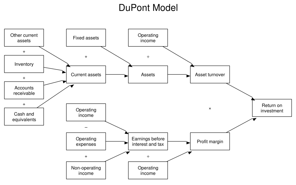 نسبة العائد على الأصول التي وضعتها دوبونت لاستخدامها الخاص يستخدم الآن من قبل العديد من الشركات لتقييم مدى فعالية استخدام الأصول. وهو يقيس الآثار المشتركة لهوامش الربح ودوران الأصول.