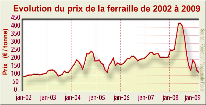 الخردة المستخدمة في صناعة الصلب ومسابك الحديد والصلب. الصلب المنتجة في فرنسا يأتي إلى المحتوى المعاد تدويره 50٪ (70٪ من الودائع المتاح حاليا في البلاد).