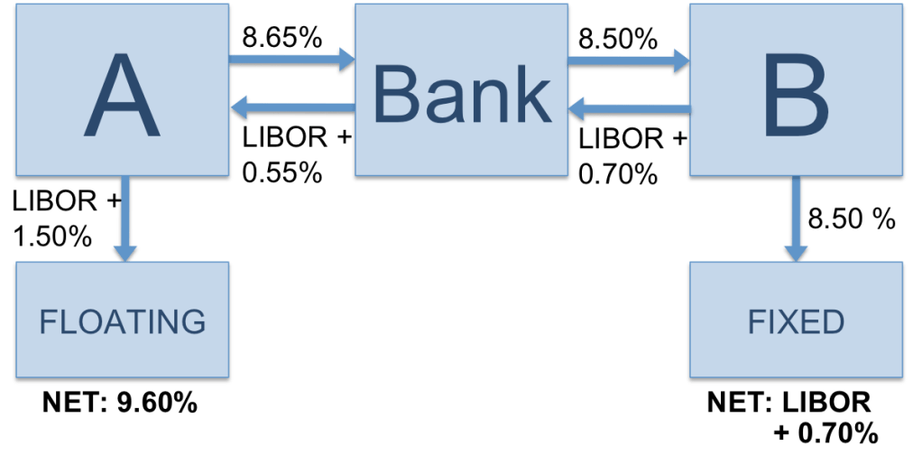هناك مجموعتان من العقود الاشتقاقية: المشتقات بورصات التبادل عبر شبكات الاتصال (OTC) والتي يتم التداول عليها بشكل خاص مثل المقايضات المالية التي لا تذهب عن طريق بورصات التبادل المباشر أو أي وسيط آخر، والعقود الاشتقاقية المتداولة في البورصة (ETD) التي يتم التداول عليها من خلال بورصات التبادل المباشر للعقود الاشتقاقية المتخصصة أو غيرها من البورصات الأخرى.
