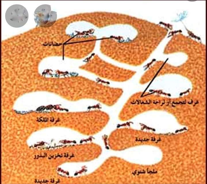 إن النمل 🐜 حشرة صغيرة جداً لا تزيد على ملليمتر و مع ذلك فهي مهندسة معمارية عظيمة ، تبني القلاع و الحصون ، و الغرف والدهاليز و المخازن ، و تهندس بدرومات كاملة تحت الأرض