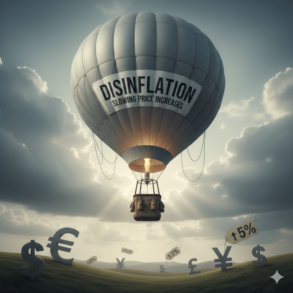 هو تباطؤ في معدل الزيادة في التضخم على مستوى الأسعار العام للسلع والخدمات في الناتج القومي الإجمالي للبلد مع مرور الوقت. ويحدث التضخم عندما تتباطأ الزيادة في مستوى أسعار المستهلك عن الفترة السابقة عندما كانت الأسعار في ارتفاع.
