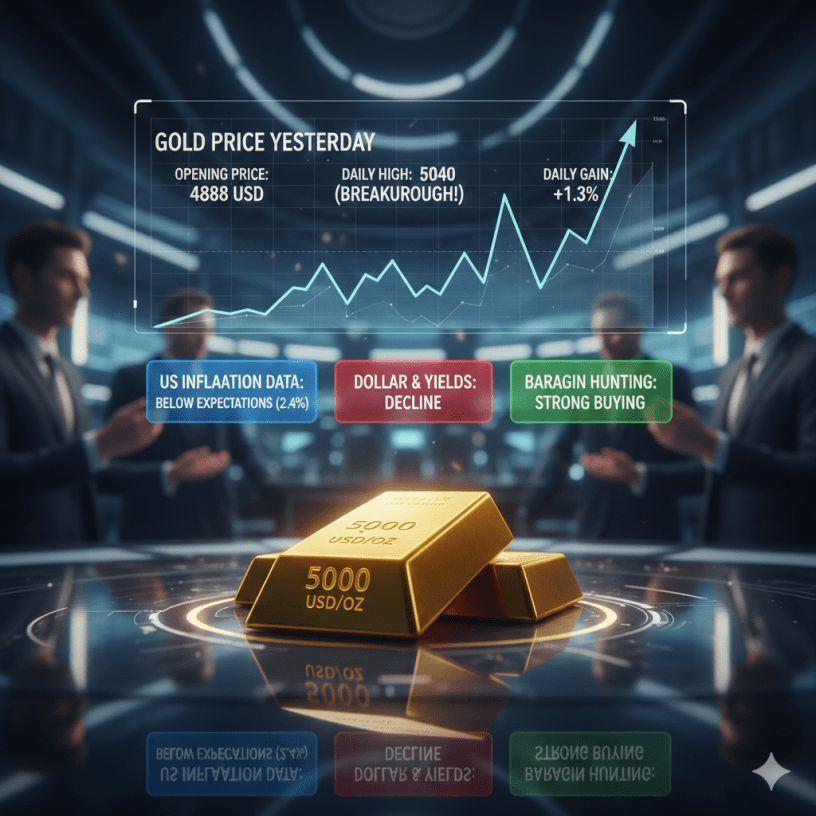 * تراجع الدولار وعوائد السندات: عقب صدور بيانات التضخم، شهد الدولار الأمريكي وعوائد سندات الخزانة تراجعاً ملحوظاً، مما جعل الذهب (المقوم بالدولار) أرخص للمستثمرين وأكثر جاذبية كأصل لا يدر عائداً.