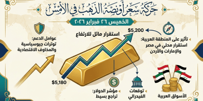 Economic, Uncategorized واصل المعدن الأصفر التمسك بمستوياته القياسية فوق حاجز الـ 5,000 دولار للأونصة The yellow metal continued to hold its record levels above the $5,000 per ounce mark. فيفري 27, 2026 — 0 تعليق