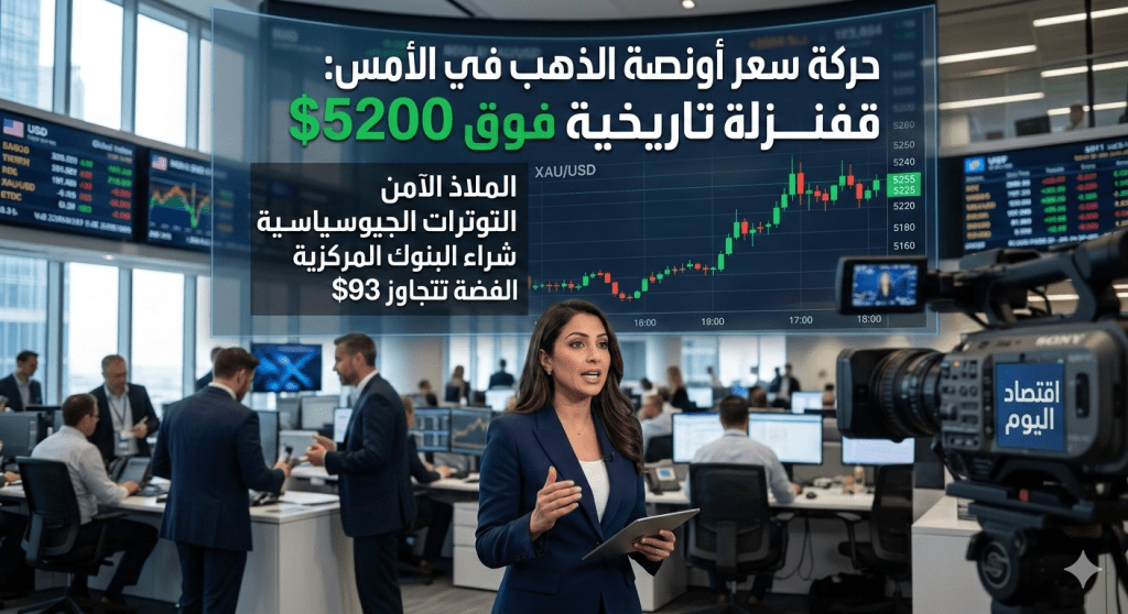 * سعر الإغلاق: استقر سعر الأونصة في المعاملات الفورية عند مستويات تتراوح بين 5,246$ و5,261$.
