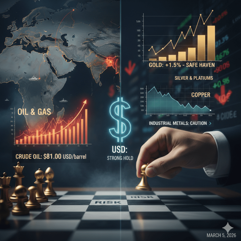 باختصار، يمكن وصف يوم 5 مارس 2026 بأنه يوم “رهان المخاطر”، حيث لا يزال المستثمرون يحاولون تقييم التبعات طويلة المدى للصراع في الشرق الأوسط. وفي ظل هذا المشهد، يظل الدولار هو اللاعب الأقوى كعملة ملاذ آمن، بينما تستمر السلع الحساسة للأزمات، وعلى رأسها النفط والذهب، في التحرك وفقاً لإيقاع الأخبار الميدانية.