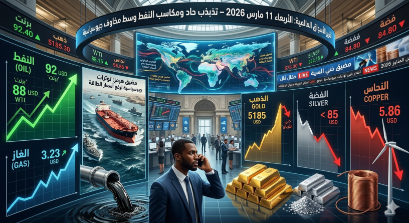 شهدت الأسواق العالمية بالأمس، الأربعاء 11 مارس 2026، حالة من التذبذب الحاد والنشاط الاستثنائي مدفوعة بالتطورات الجيوسياسية المتسارعة في منطقة الشرق الأوسط، وتحديداً الصراع في إيران وتأثيره المباشر على ممر الطاقة الحيوي في مضيق هرمز. اتسم أداء السلع بمزيج من المكاسب القياسية في قطاع الطاقة مقابل ضغوط بيعية وتصحيحات في قطاع المعادن، وفيما يلي تفصيل لحركة هذه الأسواق: