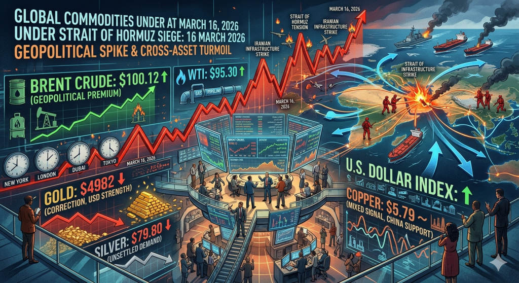 شهدت الأسواق العالمية يوم أمس، الاثنين 16 مارس 2026، حالة من الترقب الشديد والتقلبات الحادة مدفوعة بتصاعد التوترات الجيوسياسية في منطقة الشرق الأوسط، وتحديداً حول مضيق هرمز، مما ألقى بظلاله على تحركات السلع الاستراتيجية والعملات.