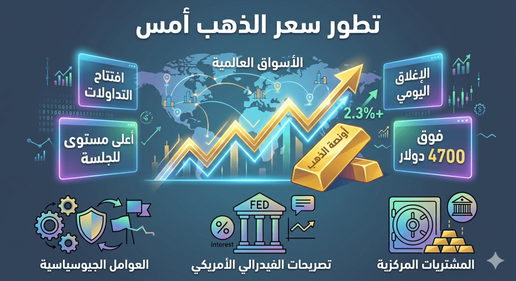 وسجلت أونصة الذهب ارتفاعاً ملحوظاً خلال تداولات الأمس لتستقر فوق مستويات قياسية جديدة تقترب من حاجز 4750 دولاراً.