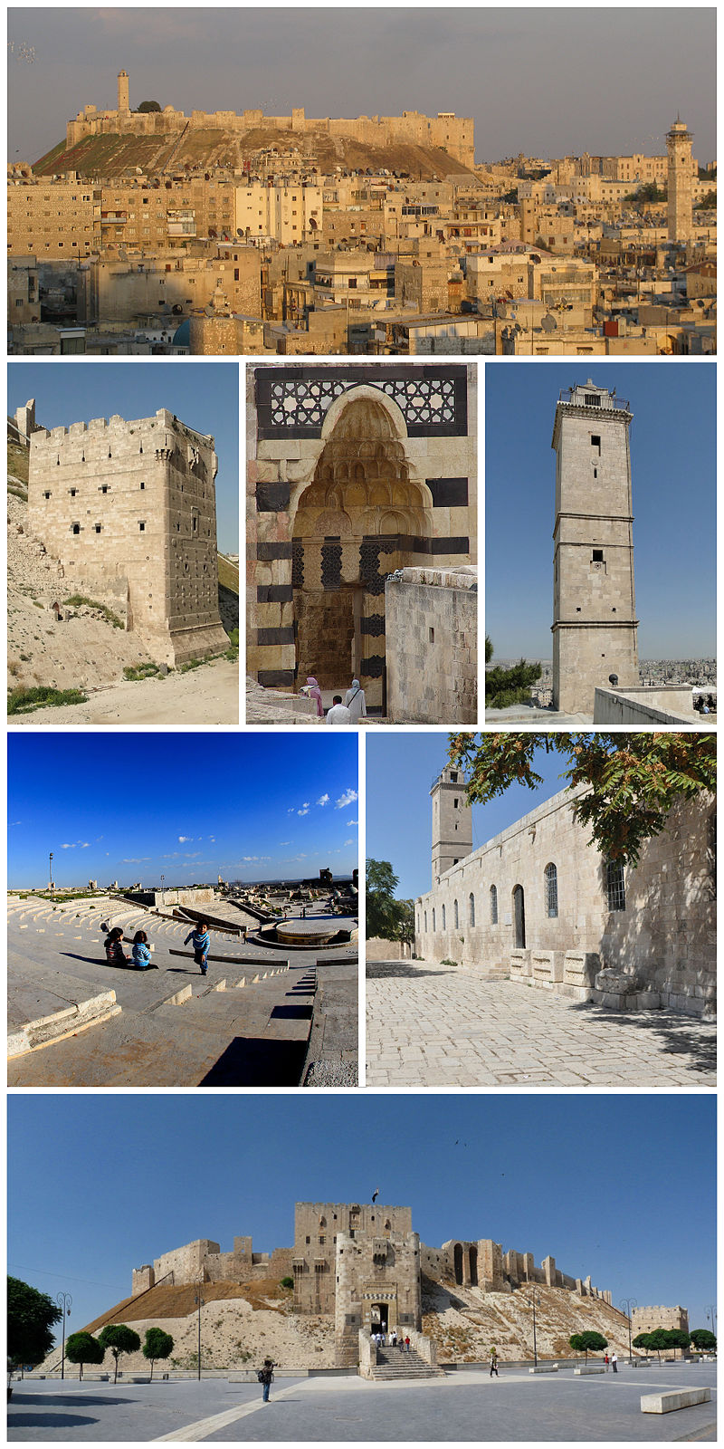 تعتبر قلعة حلب إحدى أقدم وأكبر القلاع في العالم، يعود استخدام التل الذي تتوضع عليه القلعة إلى الألفية الثالثة قبل الميلاد، حيث احتلتها فيما بعد العديد من الحضارات بما في ذلك الإغريق والبيزنطيين والمماليك والأيوبيين، بينما يظهر أن أغلب البناء الحالي يعود إلى الفترة الأيوبية. أجرت عليها مؤسسة آغا خان للثقافة والجمعية الأثرية في حلب عمليات حفظ واسعة في عام 2000. تقع القلعة في مركز المدينة القديمة التي أدرجتها منظمة اليونسكو على لائحة مواقع التراث العالمي عام 1986.