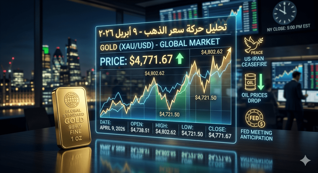 تحليل حركة الذهب في الأسواق العالمية (أمس 9 أبريل 2026)