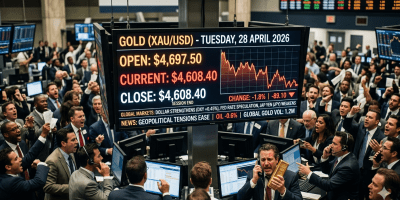 Economic, Uncategorized الذهب في الجلسة الثانية موجة بيع مع إنخفاض أكثر من 100$ ليبقى السعر فوق 4600 Gold saw a sell-off in the second session, dropping more than $100, but the price remained above 4600. أفريل 30, 2026 — 0 تعليق